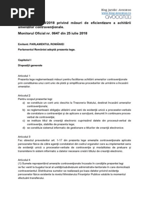 A aparut in monitorul oficial de miercuri 25 iulie 2018 la nr 647 legea 203 din 2018 a fost promulgata. Avem 2 stiri despre lege 203 2018. 2/12.07.2001, privind regimul juridic al contravenţiilor , astfel: