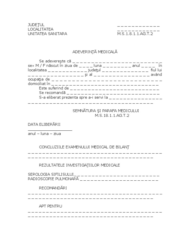 Model Adeverinta Medicala Tip Pentru Inscriere Facultate