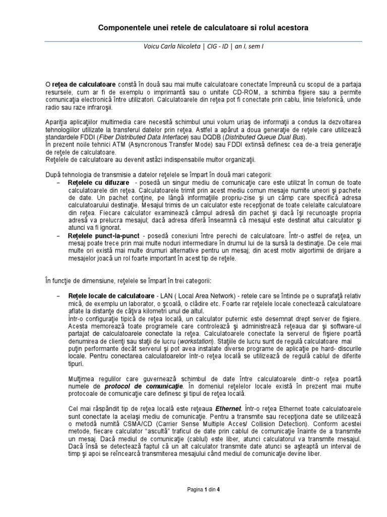 La acestea, mai adaugati o tastatura, un monitor si un mouse, si calculatorul este complet. Pdf proiectarea unei retele de calculatoare cristina nico academia edu. Calculatoare şi servere o reţea de calculatoare este un grup de calculatoare şi echipamente periferice care partajează (folosesc în comun) resurse.