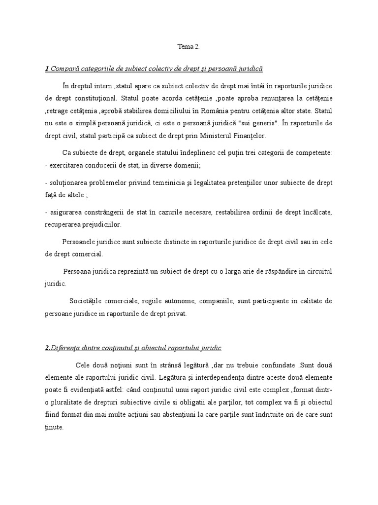 Raporturi juridice de natura penala c. De fapt, persoanele juridice pot fi compuse din persoane fizice sau alte persoane juridice. Persoana juridica de drept public;
