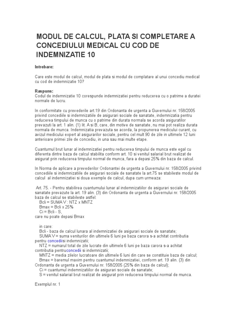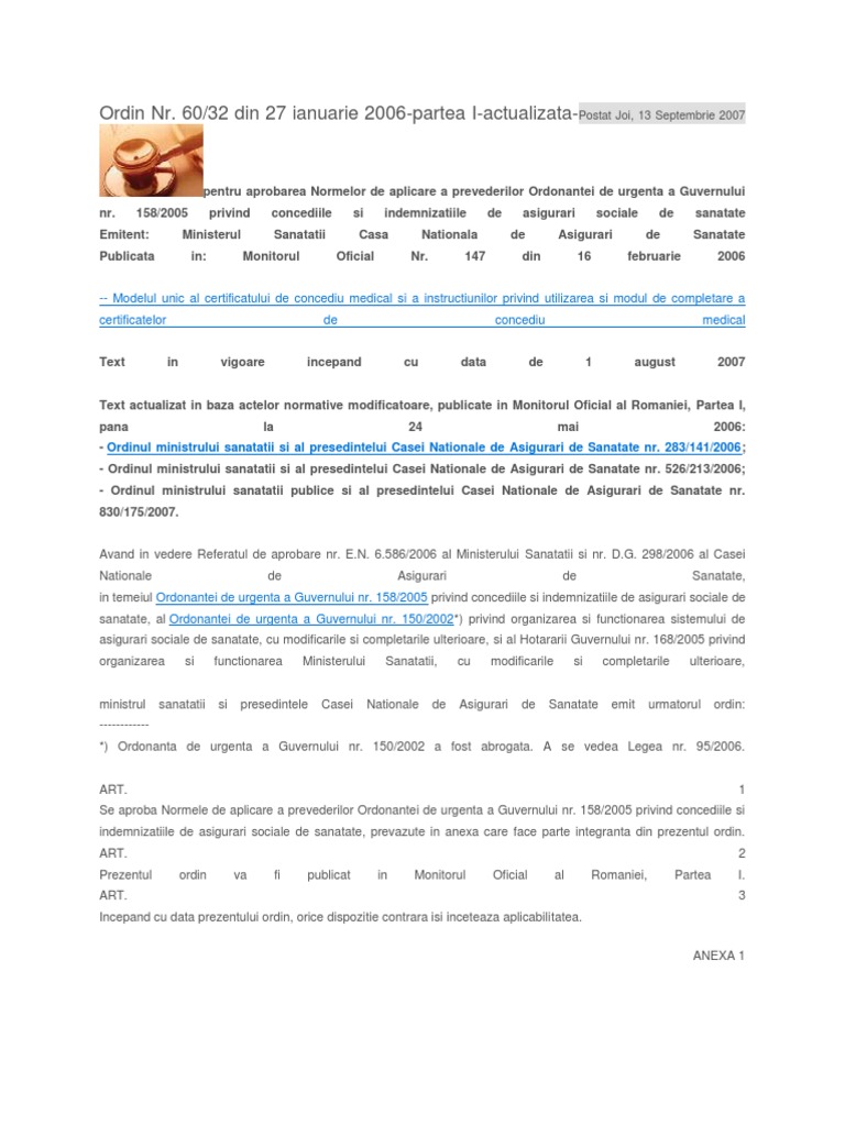 158 din 17 noiembrie 2005 privind concediile si indemnizatiile de asigurari sociale de sanatate forma sintetică la data 32 alin.