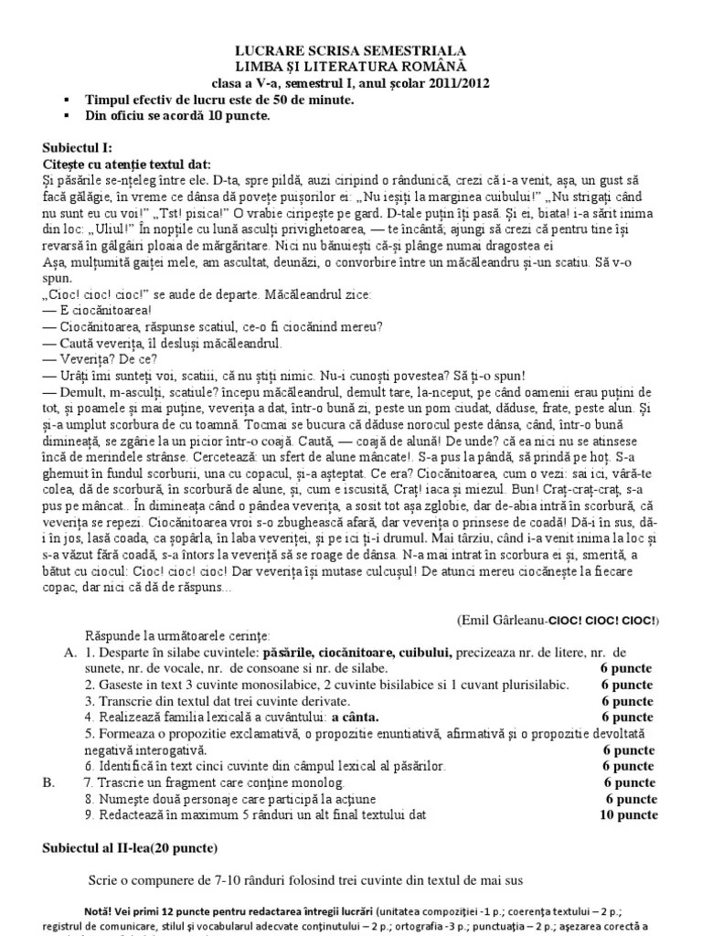 Modele Teza Romana Clasa 5 Semestrul 1 / Teza La Romana Clasa A Vi A Semestrul Al Doilea